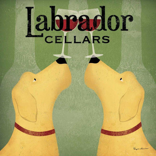 Two Labrador Wine Dogs Square White Modern Wood Framed Art Print with Double Matting by Fowler, Ryan