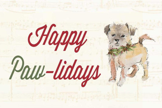 Happy Paw-lidays White Modern Wood Framed Art Print with Double Matting by Loreth, Lanie