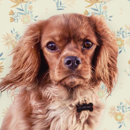 Florals and Spaniels White Modern Wood Framed Art Print with Double Matting by Josefina