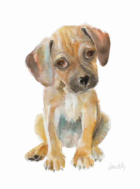 Water Color Girl With Puppy I White Modern Wood Framed Art Print with Double Matting by Loreth, Lanie