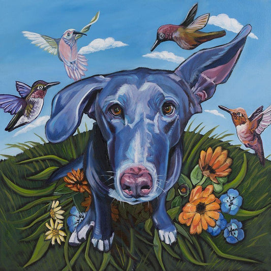 Dog and Dragonflies White Modern Wood Framed Art Print with Double Matting by Wronski, Kathryn