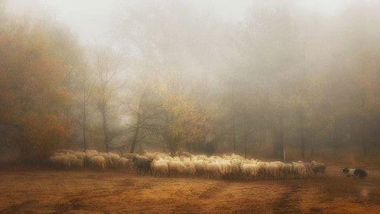 The Buffalo Shepherd White Modern Wood Framed Art Print with Double Matting by Aktar, Meric