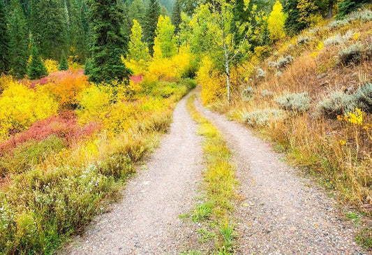 Wyoming-Hoback fall colors along Highway 89 and gravel road-with Dogwood-Willow-Evergreens-Aspens White Modern Wood Framed Art Print with Double Matting by Gulin, Sylvia