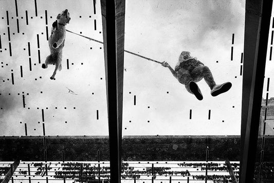 Snowboarder And His Dog White Modern Wood Framed Art Print with Double Matting by Krivec, Ales