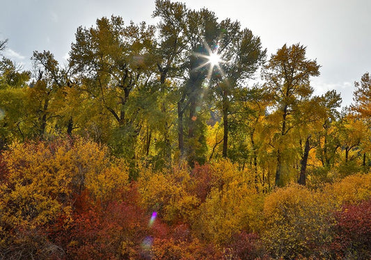 USA- Washington State. Cottonwoods and wild dogwoods trees in Autumn Color along the Yakima River White Modern Wood Framed Art Print with Double Matting by Gulin, Darrell