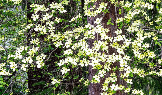 Washington State-Snoqualmie forest edge in spring with dogwoods blooming White Modern Wood Framed Art Print with Double Matting by Gulin, Sylvia