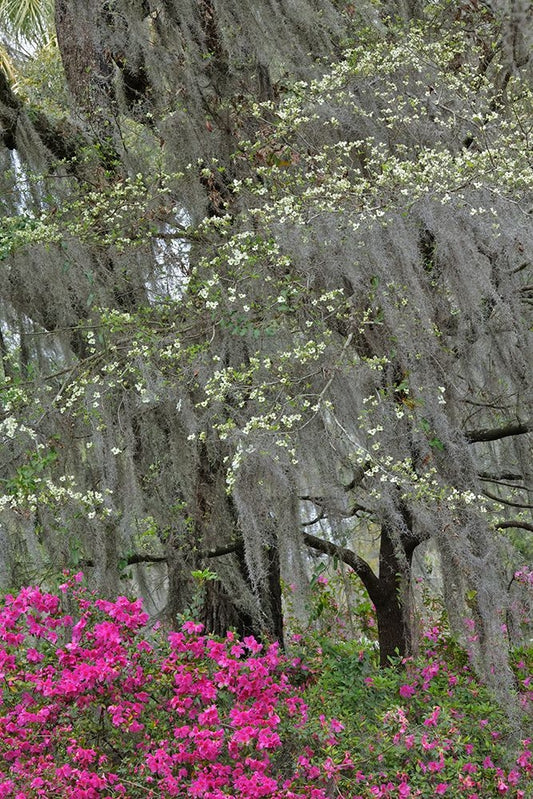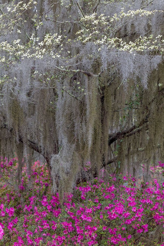 Flowering dogwood trees and azaleas in full bloom in spring-Bonaventure Cemetery-Savannah-Georgia White Modern Wood Framed Art Print with Double Matting by Jones, Adam