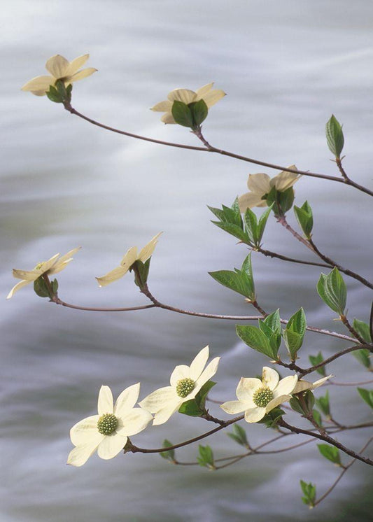 CA, Yosemite Flowering dogwood along the River White Modern Wood Framed Art Print with Double Matting by Flaherty, Dennis