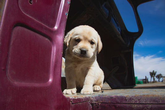 Labrador retriever puppy White Modern Wood Framed Art Print with Double Matting by Muench, Zandria