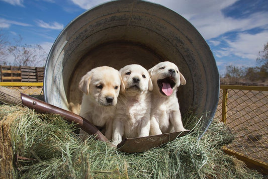 Labrador retriever puppies White Modern Wood Framed Art Print with Double Matting by Muench, Zandria
