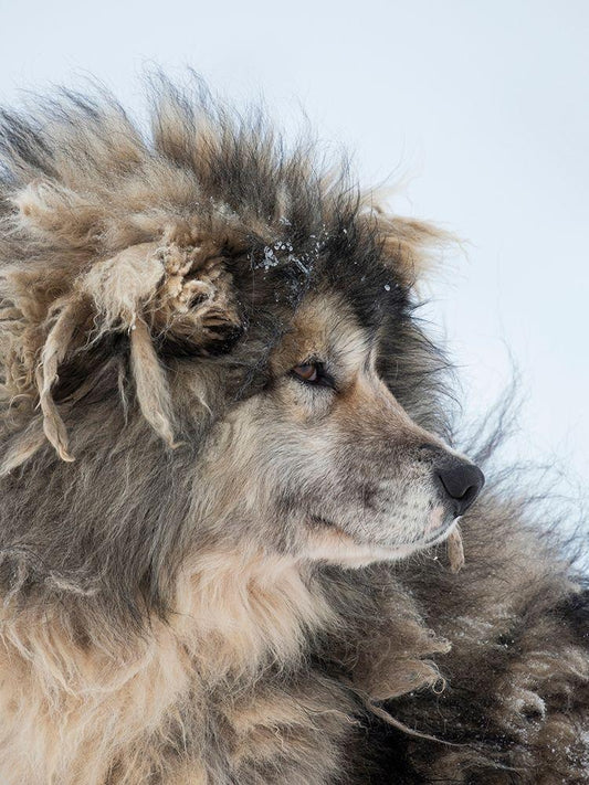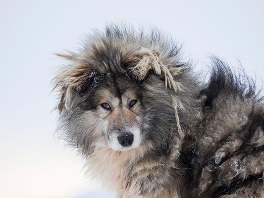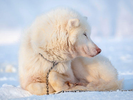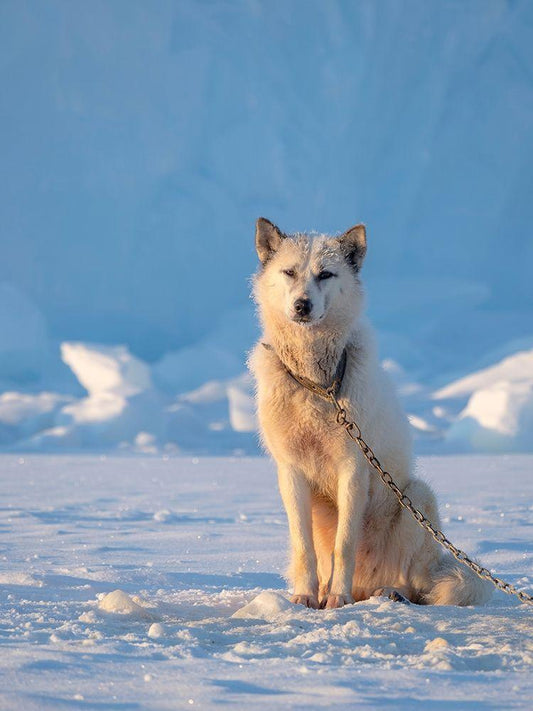 Sled dog during winter in Uummannaq in Greenland White Modern Wood Framed Art Print with Double Matting by Zwick, Martin
