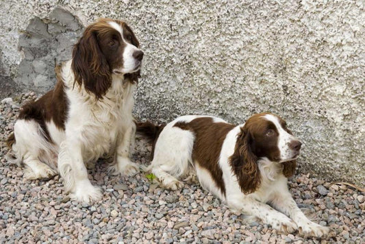 Ireland, Donegal Two Springer spaniel dogs White Modern Wood Framed Art Print with Double Matting by Kaveney, Wendy