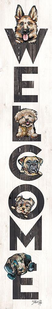 Welcome Dogs White Modern Wood Framed Art Print with Double Matting by Rae, Marla