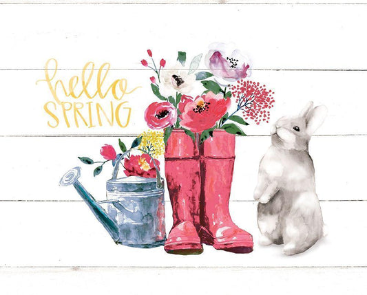 Hello Spring White Modern Wood Framed Art Print with Double Matting by Dogwood Portfolio