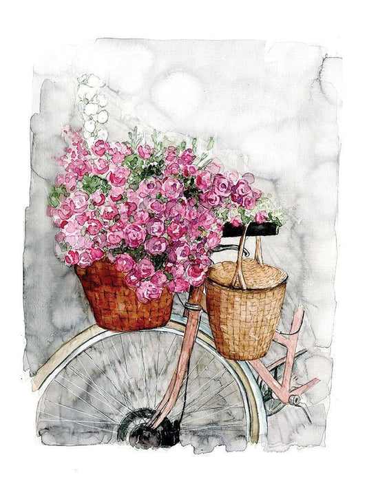 Bicycle in Spring White Modern Wood Framed Art Print with Double Matting by Dogwood Portfolio