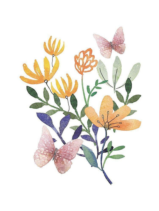 Butterflies and Flowers White Modern Wood Framed Art Print with Double Matting by Dogwood Portfolio