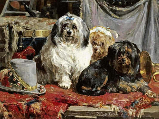 Still Life with Three Dogs, - Nature Morte aux Trois Chiots White Modern Wood Framed Art Print with Double Matting by Gauguin, Paul