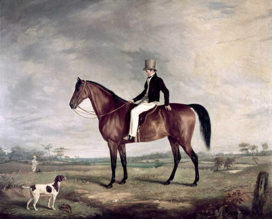A Young Gentleman In a Grey Hat On a Bay Hunter White Modern Wood Framed Art Print with Double Matting by Cooper, Abraham