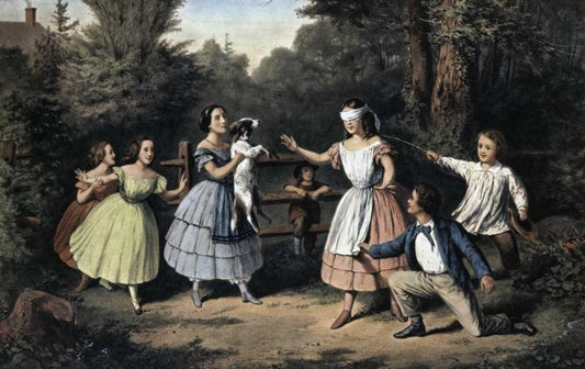 Blind Mans Buff White Modern Wood Framed Art Print with Double Matting by Currier and Ives