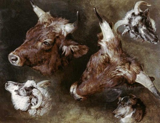 Heads of Sheep and Cattle White Modern Wood Framed Art Print with Double Matting by Landseer, Sir Edwin