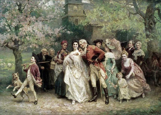 Christening White Modern Wood Framed Art Print with Double Matting by Ferris, Jean Leon Gerome