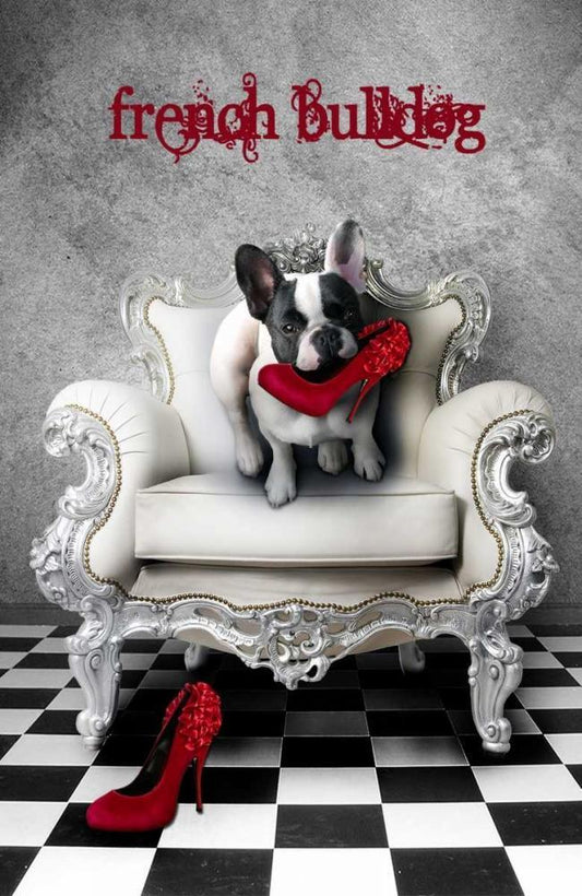 French Bulldog White Modern Wood Framed Art Print with Double Matting by Babette