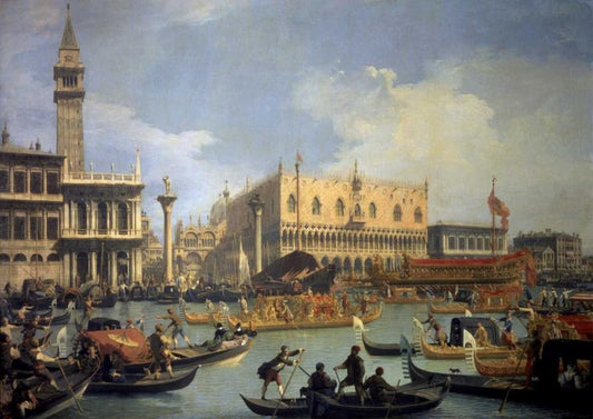 The Betrothal of the Venetian Doge to the Adriatic White Modern Wood Framed Art Print with Double Matting by Canaletto
