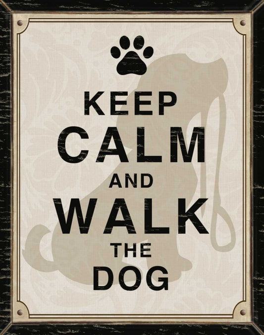 KEEP CALM AND WALK THE DOG White Modern Wood Framed Art Print with Double Matting by Ballantyne, Piper