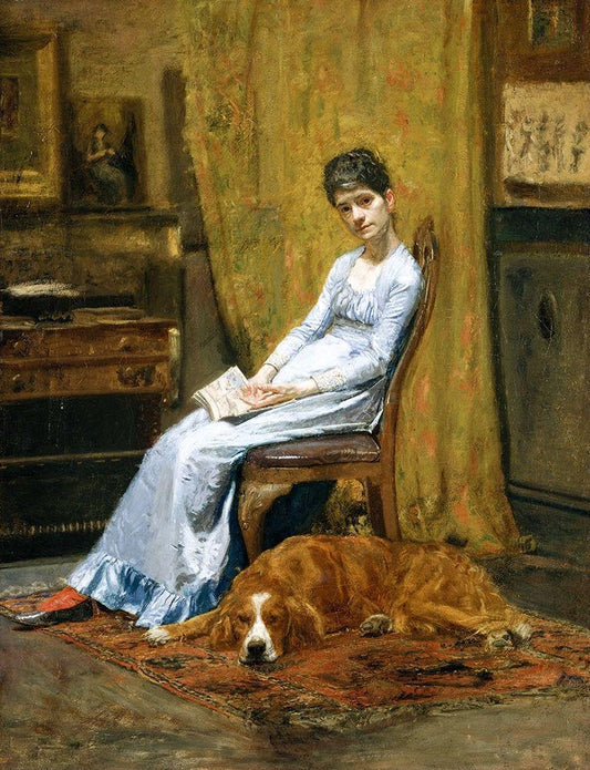 The Artists Wife and His Setter Dog White Modern Wood Framed Art Print with Double Matting by Eakins, ThomasRegular price From $39.99 USDRegular priceUnit price per-