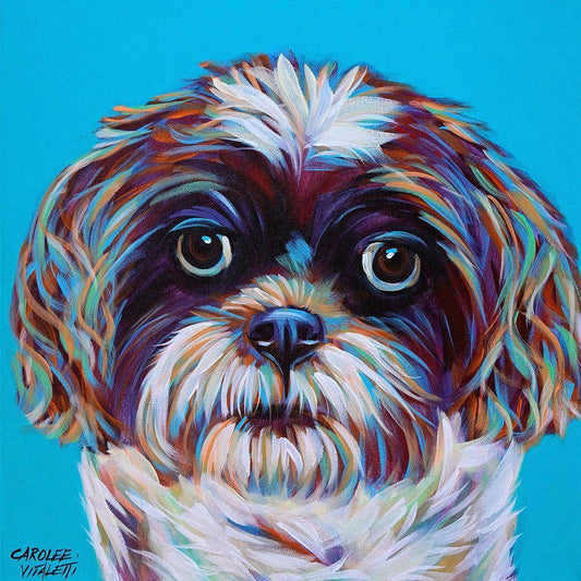 Shih Tzu on Blue White Modern Wood Framed Art Print with Double Matting by Vitaletti, Carolee
