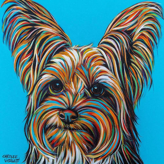 Yorkie on Blue White Modern Wood Framed Art Print with Double Matting by Vitaletti, Carolee