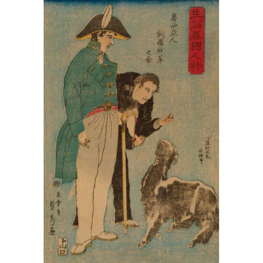 Russians and sheep (Roshiyajin shirasha yo? no zu), 1860 White Modern Wood Framed Art Print by Utagawa, Sadahide