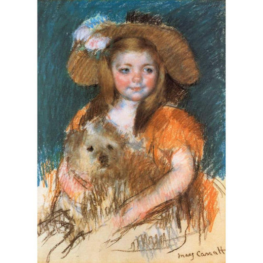 Child Holding A Dog 1901 White Modern Wood Framed Art Print by Cassatt, Mary