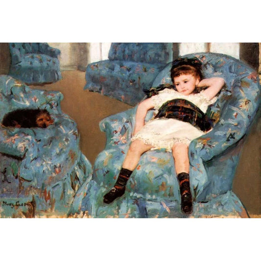 Little Girl In A Blue Armchair 1878 White Modern Wood Framed Art Print by Cassatt, Mary