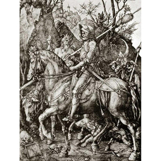 Knight Death And The Devil White Modern Wood Framed Art Print by Durer, Albrecht