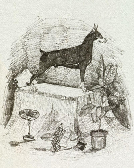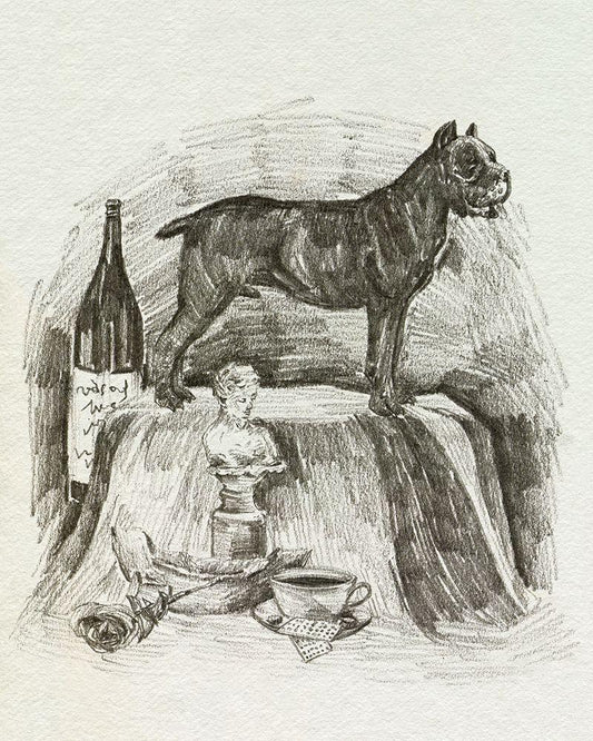 French Bulldog and Flower Glasses White Modern Wood Framed Art Print with Double Matting by Fab Funky
