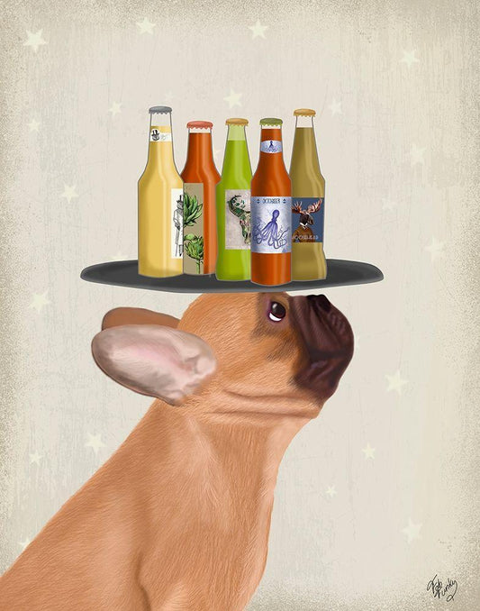 French Bulldog Beer Lover White Modern Wood Framed Art Print with Double Matting by Fab Funky