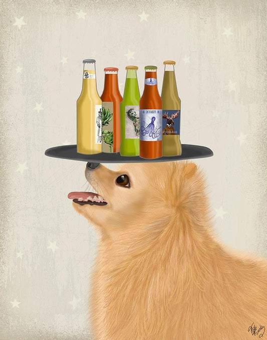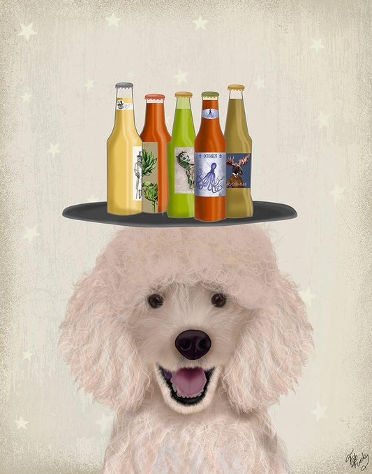 Poodle Beer Lover White Modern Wood Framed Art Print with Double Matting by Fab Funky