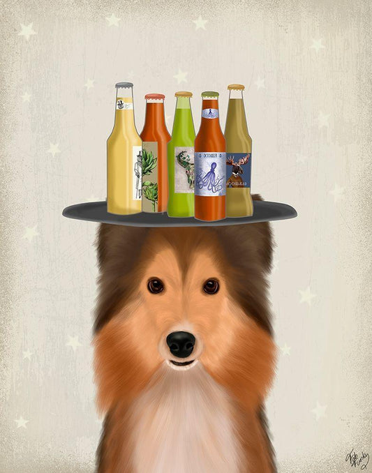 Shetland Sheepdog Beer Lover White Modern Wood Framed Art Print with Double Matting by Fab Funky