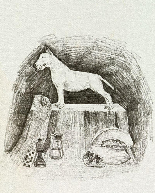 English Bulldog and Flower Glasses White Modern Wood Framed Art Print with Double Matting by Fab Funky