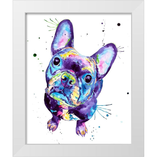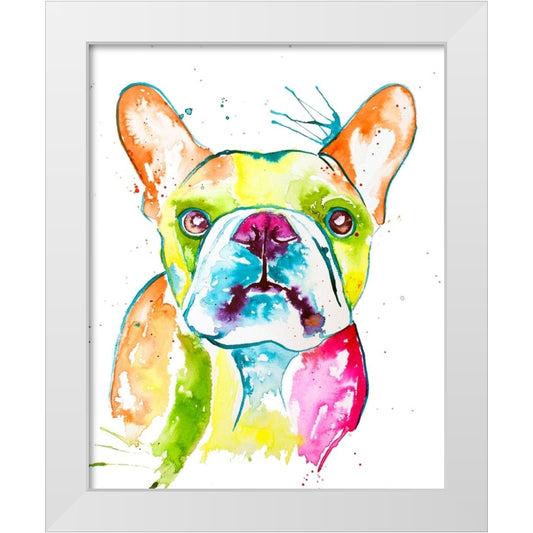 Colorful Frenchie White Modern Wood Framed Art Print by Seeley, Jenn