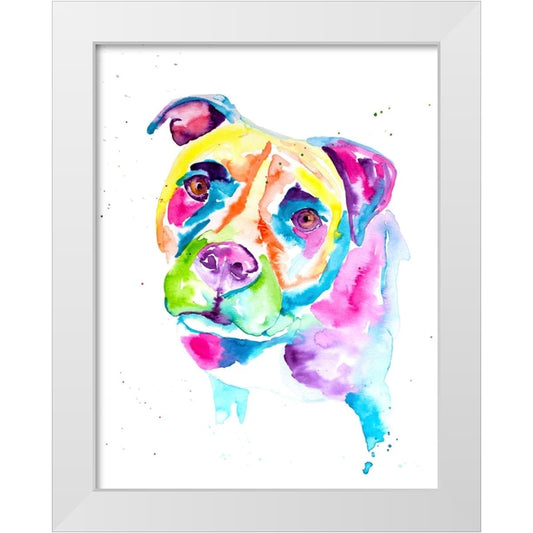 Colorful Pitbull White Modern Wood Framed Art Print by Seeley, Jenn