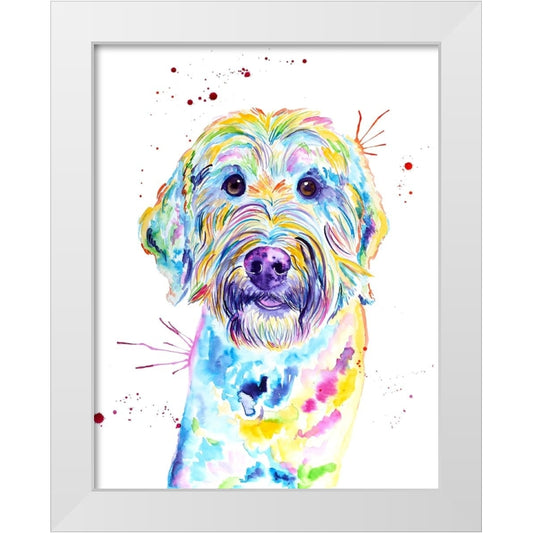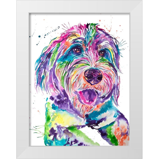 Colorful Bernedoodle White Modern Wood Framed Art Print by Seeley, Jenn