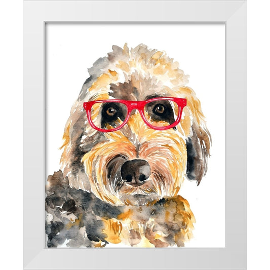 Goldendoodle in Glasses White Modern Wood Framed Art Print by Seeley, Jenn