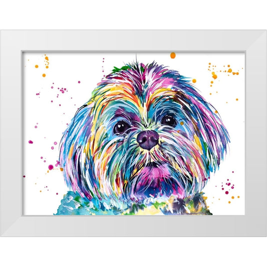 Louie the Colorful Shitzhu White Modern Wood Framed Art Print by Seeley, Jenn