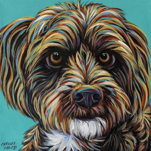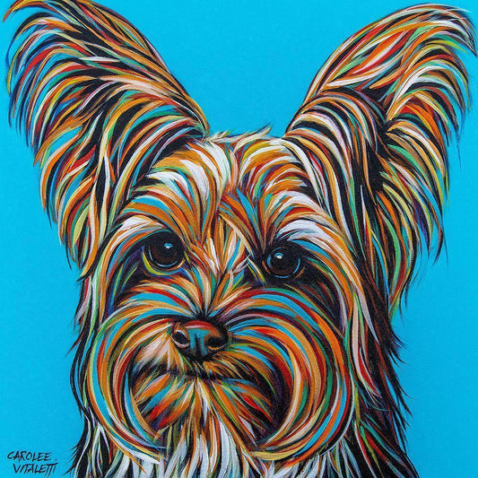 Yorkie on Blue White Modern Wood Framed Art Print by Vitaletti, Carolee