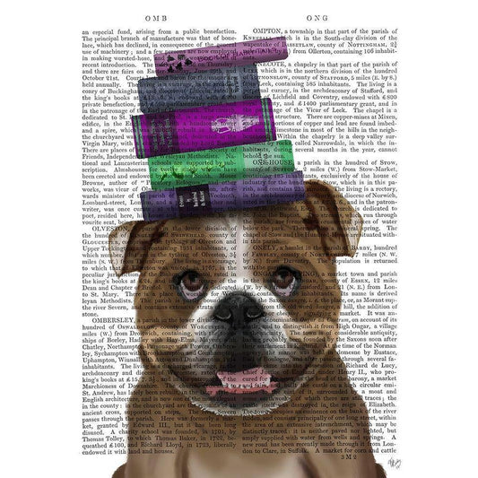 Dog Au Vin, Basset Hound White Modern Wood Framed Art Print by Fab Funky