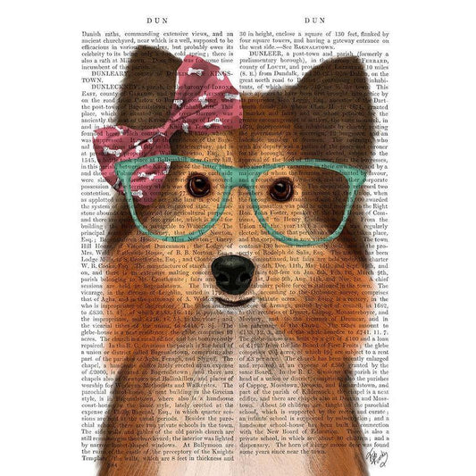 Shetland Sheepdog with Glasses and Bow Tie White Modern Wood Framed Art Print by Fab Funky