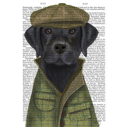 Black Labrador Country Dog White Modern Wood Framed Art Print by Fab Funky