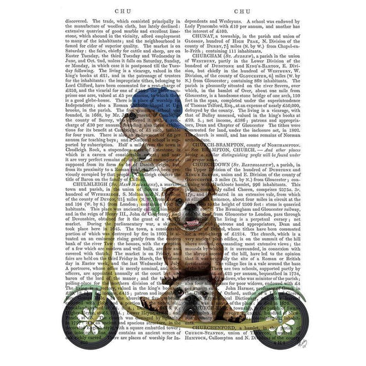 English Bulldog And Books White Modern Wood Framed Art Print by Fab Funky